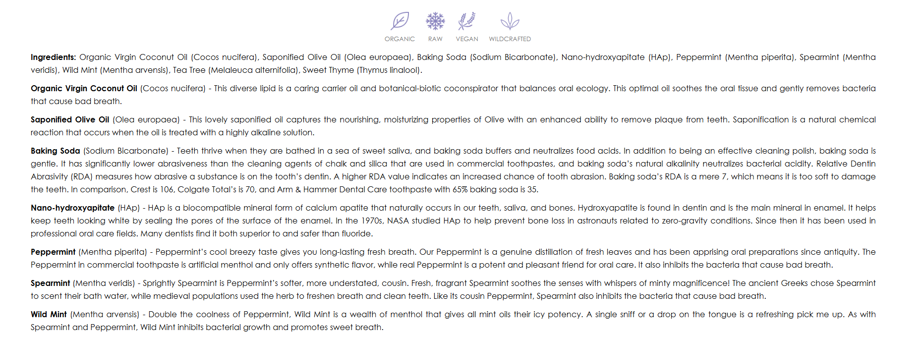 Then he started dropping bombs. He was breaking down common ingredients found in oral care, things like fluoride, artificial colors, plastics, etc. It was nasty. I didn’t realize half of these ingredients came from the gas industry or were made by a bunch of white coats in a lab.