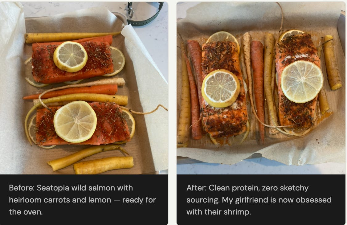 01. Swap your seafood. Choose wild-caught over farmed. Seatopia and Vital Choice are the two I trust most.