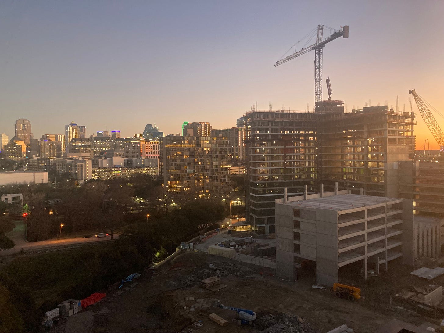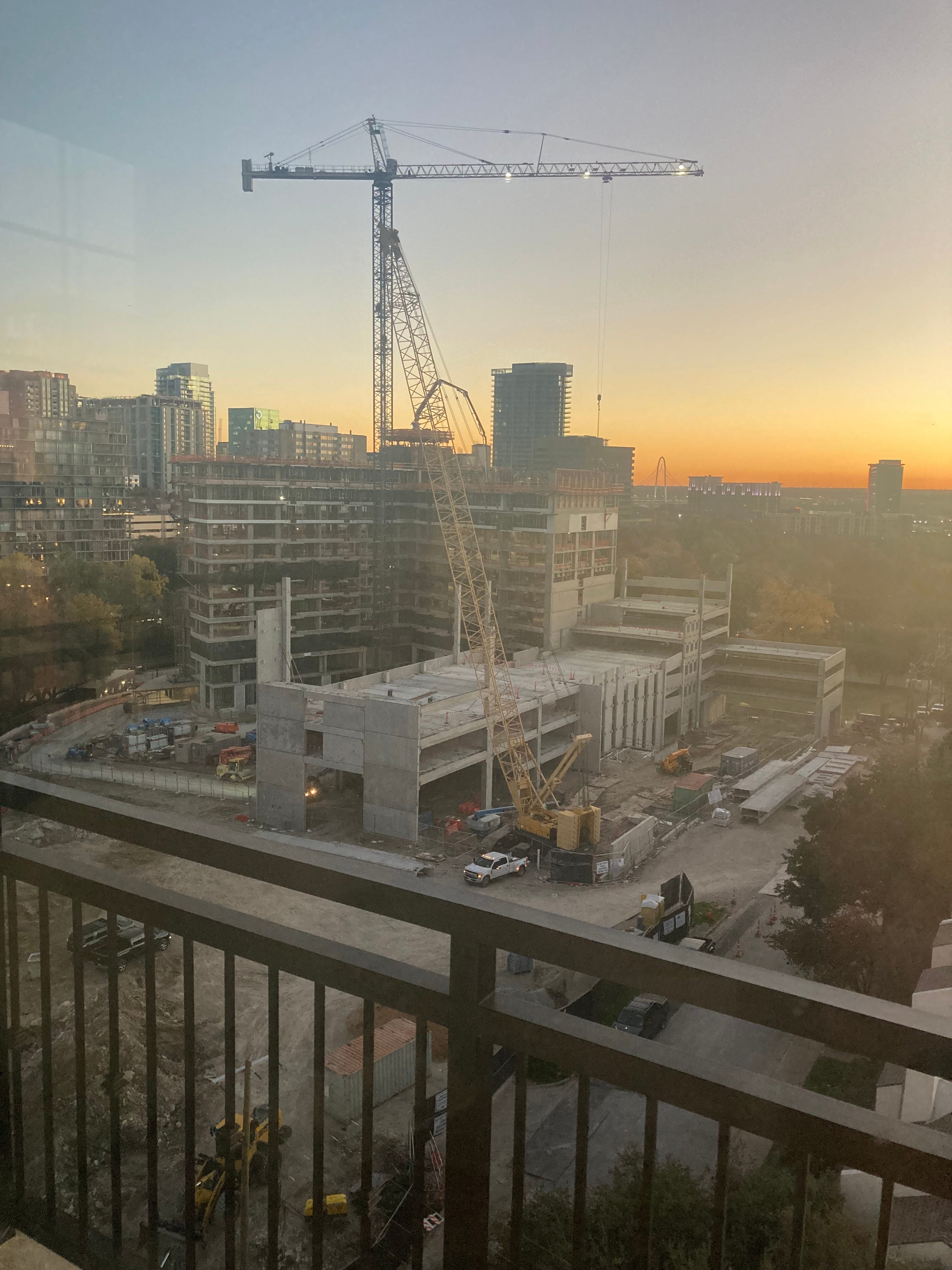 I'm up just before they arrive, cherishing the moments of stillness. I wake up at 5:45, do my tongue scraping, oil pulling, yoga, clean up, and breathwork. The sky is still dark, but you start to see the lights. They weave in and out through the concrete structure like silent assassins. No windows, no walls, not yet, at least. Just concrete.