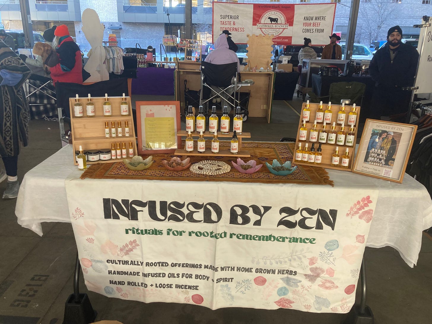 Next thing I knew, I was at her booth, surrounded by the aroma of a yogi pharmacy, getting doused with beautiful essential oils like bergamot, peppermint, and kolsi, an East African herb known for its detoxifying properties.